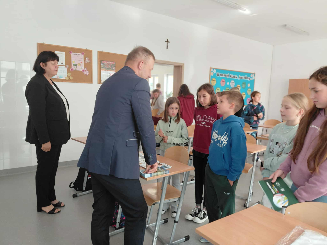 Na ręce dyrekcji szkół w Jarocinie i Domostawie przekazano pakiet opracowanych broszur i zakładek edukacyjnych. Materiały trafiły do wszystkich uczniów szkół, wspomagając ich w utrwaleniu wiedzy w zakresie potrzeby racjonalnej gospodarki wodno-ściekowej, oraz korzystnych i potrzebnych inwestycji realizowanych przez samorząd Gminy Jarocin przy wsparciu ze środków Krajowego Planu Odbudowy i Zwiększania Odporności.