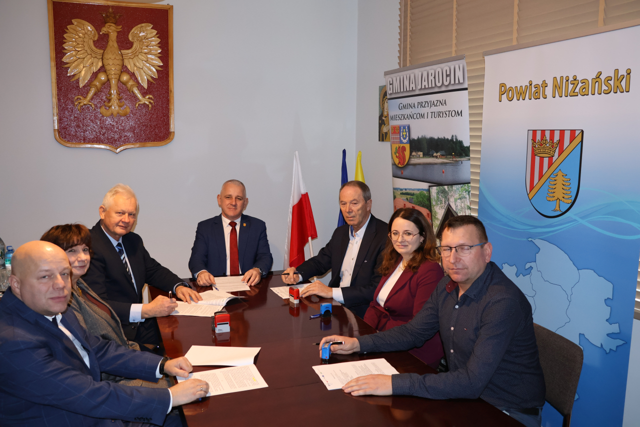 Wykonawcą robót wyłonionym w wyniku postępowania przetargowego została firma ; LACH – POL Sp. z o.o., Golce 63 A, 37-405 Jarocin, która zrealizuje inwestycję za kwotę brutto 3 101 455,93 zł   gdzie 84% tej kwoty  będzie pochodziła z dotacji otrzymanej z Województwa Podkarpackiego. Pozostała część – wkład własny zostanie pokryta wspólnie przez Gminę Jarocin i Powiat Niżański. Zadanie to będzie bowiem realizowane wspólnie na podstawie zawartego porozumienia, w którym Gmina Jarocin pełni rolę Lidera, a Powiat Niżański jest Partnerem przedsięwzięcia.  Przy podpisaniu umowy obecni byli  ; Ze Strony Lidera: Wójt Gminy Jarocin Tomasz Podpora, Z-ca Wójta Andrzej Kata, Skarbnik Gminy Karolina Małek; ze strony Partnera Projektu: Robert Bednarz -  Starosta Niżański ,  Józef Sroka – Wicestarosta, Alicja Habuda-Cichoń  -  Radna Powiatu,   oraz Paweł Lach właściciel Firmy LACH – POL.