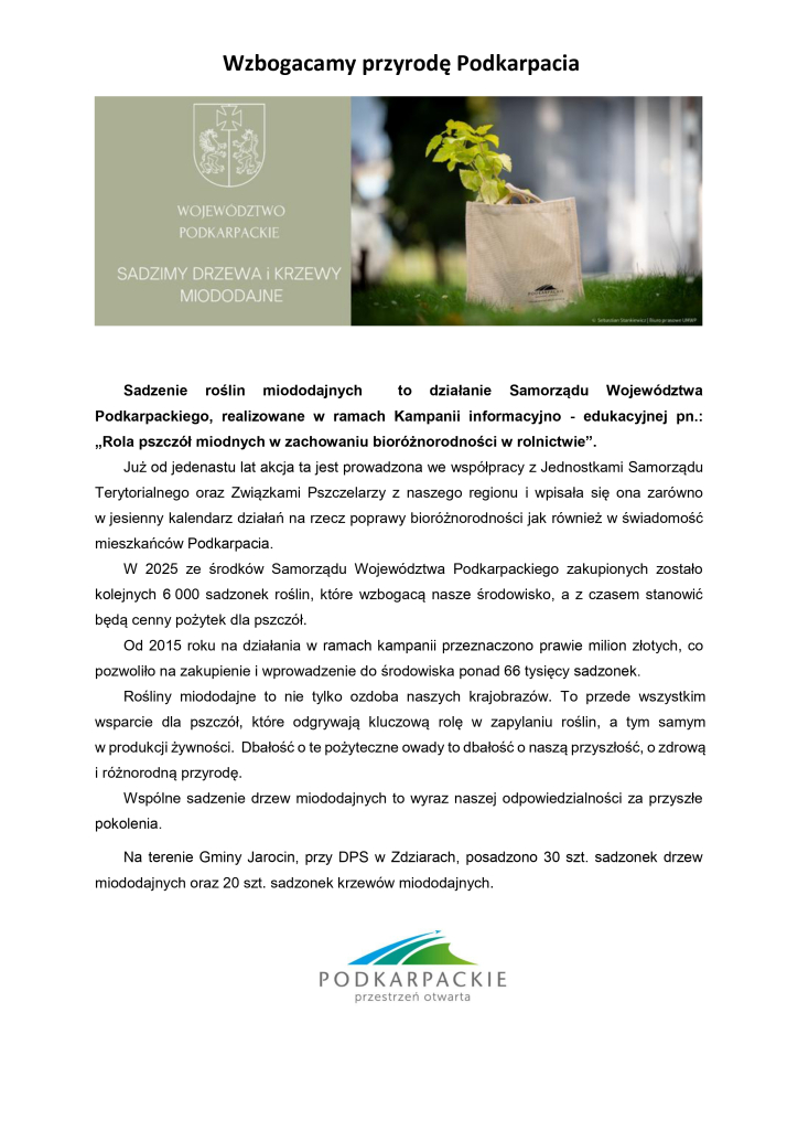 Kampanii informacyjno - edukacyjnej pn.: „Rola pszczół miodnych w zachowaniu bioróżnorodności w rolnictwie”.